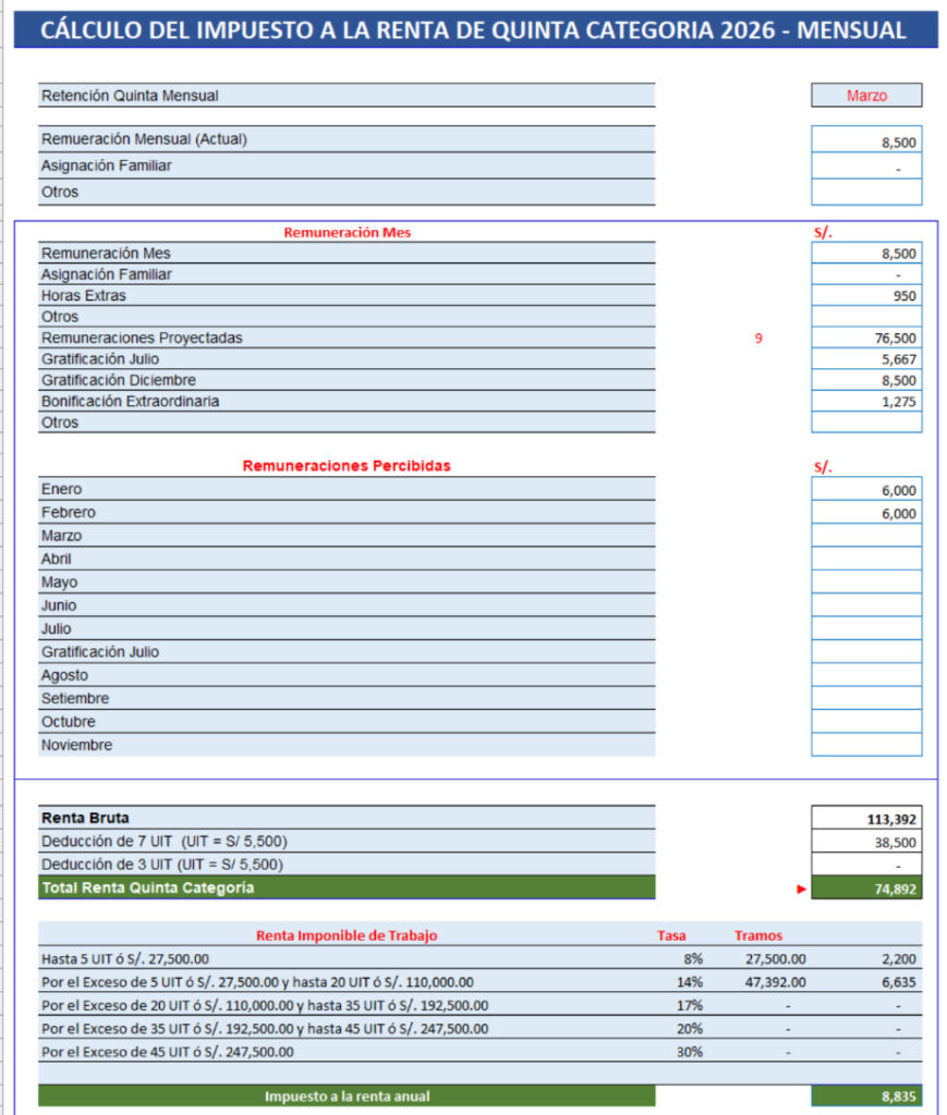 ¿Calcular la renta de quinta categoría del mes de marzo 2026?