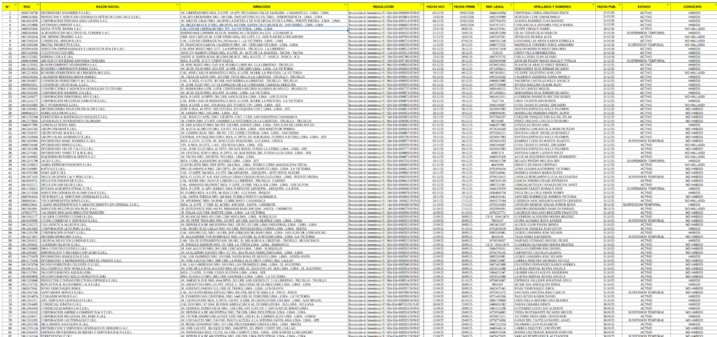 Listado de Sujetos Sin Capacidad Operativa SUNAT